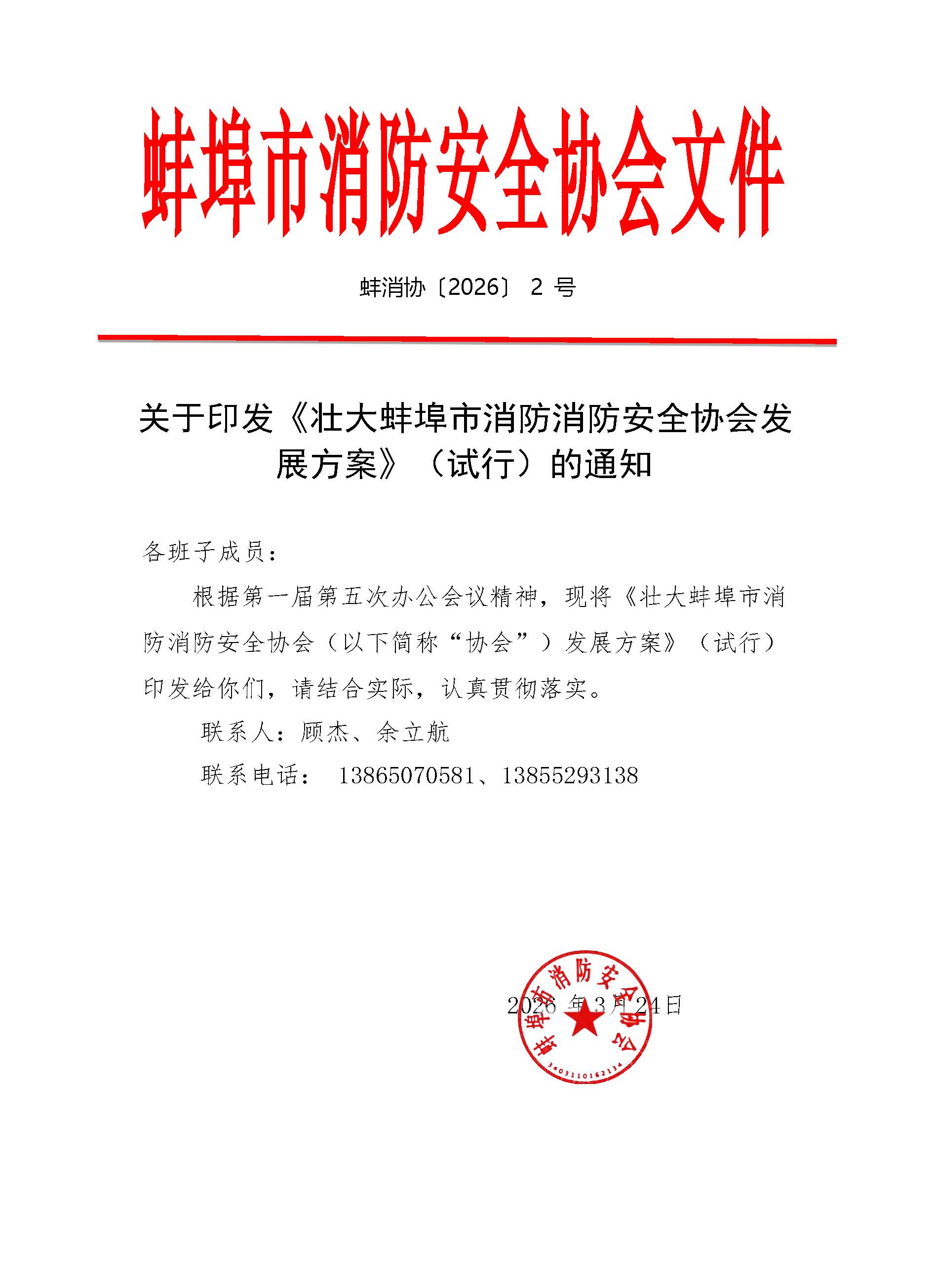 关于印发《壮大蚌埠市消防消防安全协会发展方案》(试行)的通知