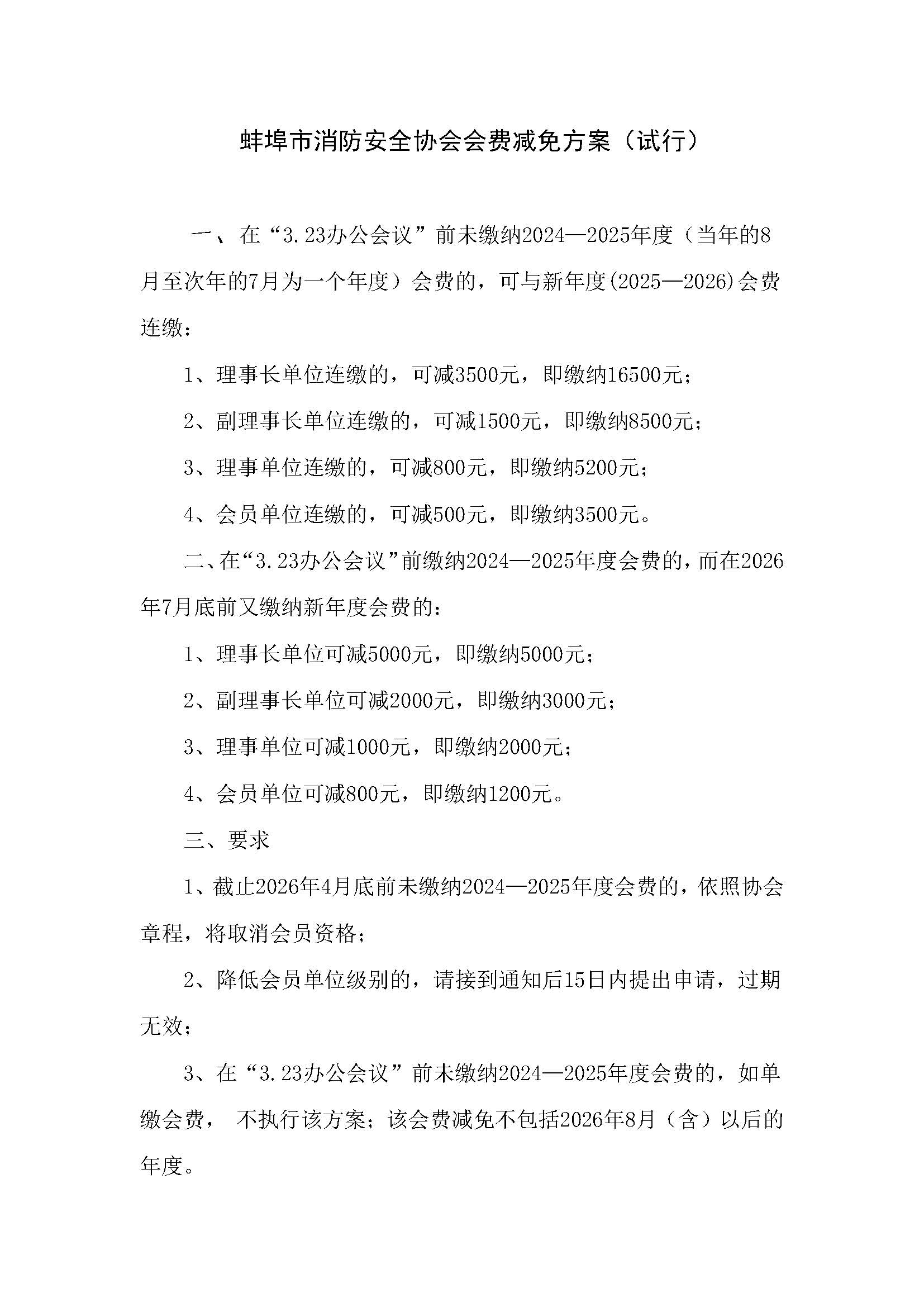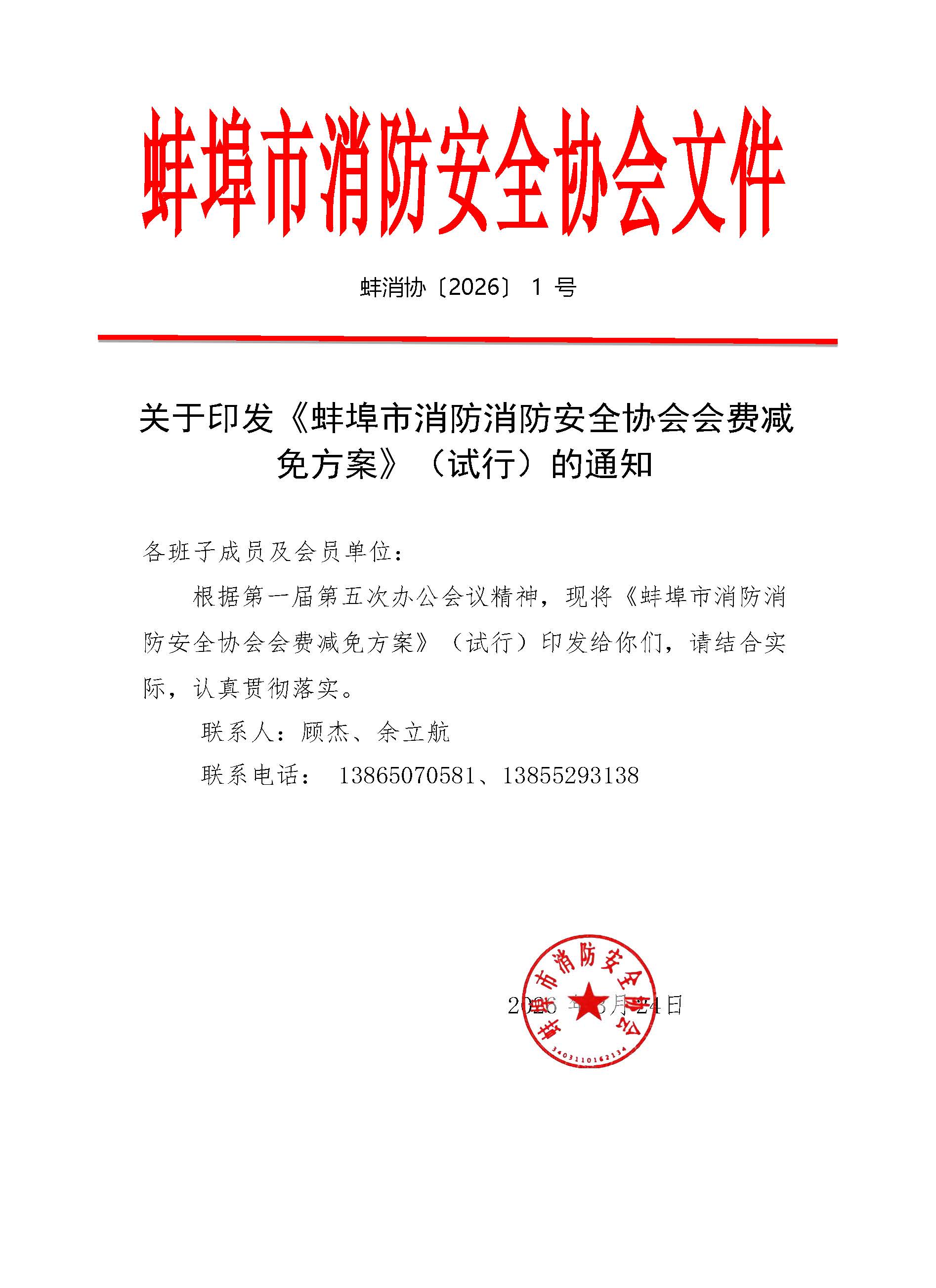 关于印发《蚌埠市消防消防安全协会会费减免方案》(试行)的通知