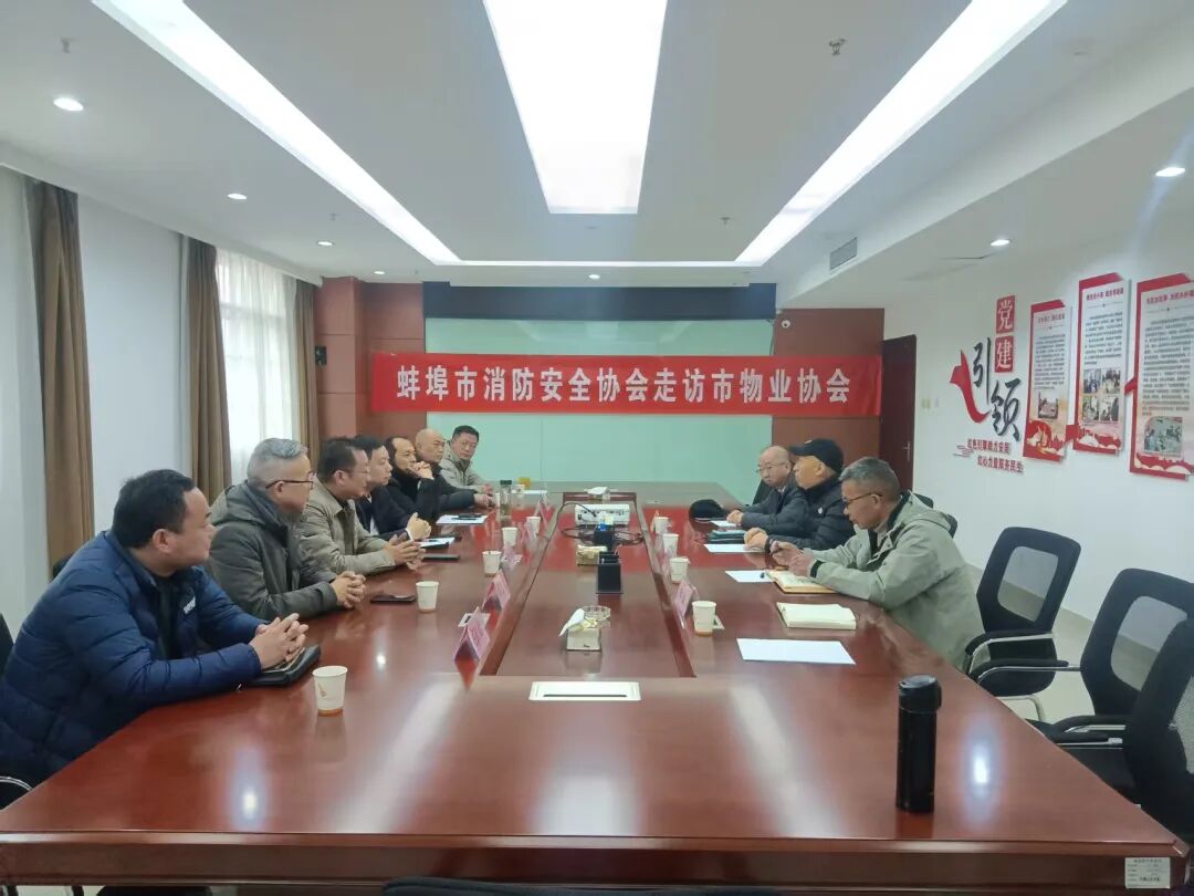 为更好促进协会发展,本着开门办会的宗旨,充分借鉴和学习本市优秀行业协会的办会经验和方法,正值岁末年初之际,12月31下午,市消防安全协会常务副会长兼秘书长顾杰带领协会副会长张超、顾问、路明、薛万礼、张岩、监事长邸克一行7人赴蚌埠市物业协会开展座谈交流,市物业协会会长朱建新、副会长沈家政、副秘书长万晨给予热情接待并参加座谈。