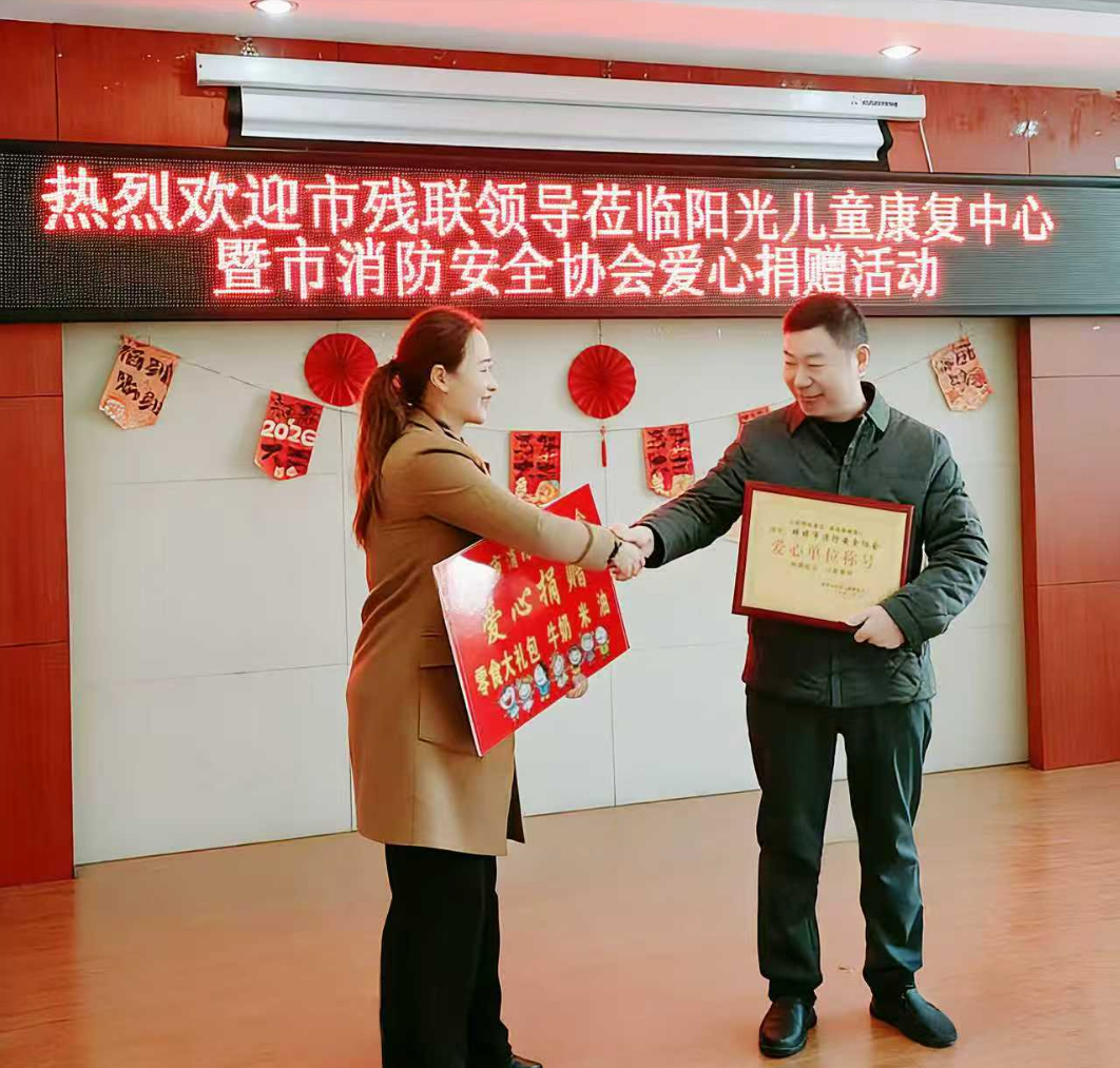 金蛇辞旧,骏马迎新。在2026年春节来临之际,为让残疾儿童群体感受到社会的关受与新春的温暖,以实际行动践行社会责任,市消防安全协会组织开展“爱心护童安·消防伴成长”——蚌埠市消防安全协会爱心捐赠活动在市阳光儿童康复中心温情上演,为特殊儿童群体送上一份沉甸甸的新年祝福。
